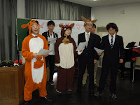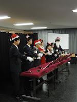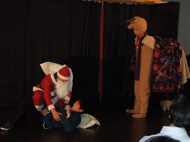 クリスマスの愛餐会です。ハンドベルやコーラス、ゴスソンなどの部活動、各クラスの出し物などでみんなが本気でもりあがります。
