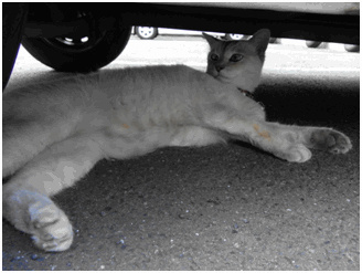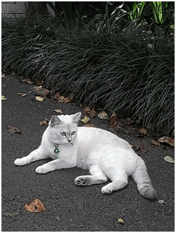 おめめの青い、真っ白なネコちゃんです。