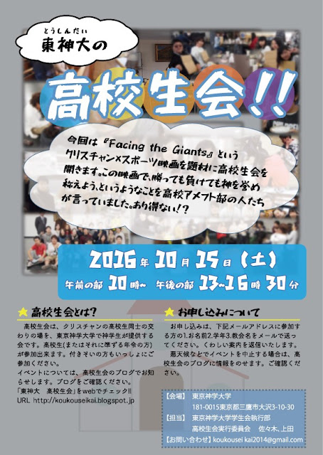 担当:東京神学大学 学生会執行部 高校生会実行委員会 佐々木、上田
